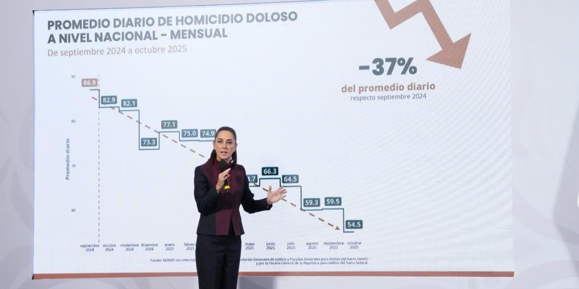 La mañanera 12/11/2025Bajan 37% homicidios dolososTAGS#LA MAÑANERA#COLUMNAMÁS CONTENIDO DEL AUTORLa mañanera11/11/2025Presenta Mundial 2026La mañanera08/11/2025No hubo recortes en universidades públicasLa mañanera07/11/2025Plan Integral contra Abuso sexualLa mañanera06/11/2025Exige a Reforma una disculpa públicaLa mañanera05/11/2025Presenta Plan Michoacán por la Paz y la JusticiaLa mañanera04/11/2025Critica Sheinbaum actitud de oposiciónDEJA UN COMENTARIO