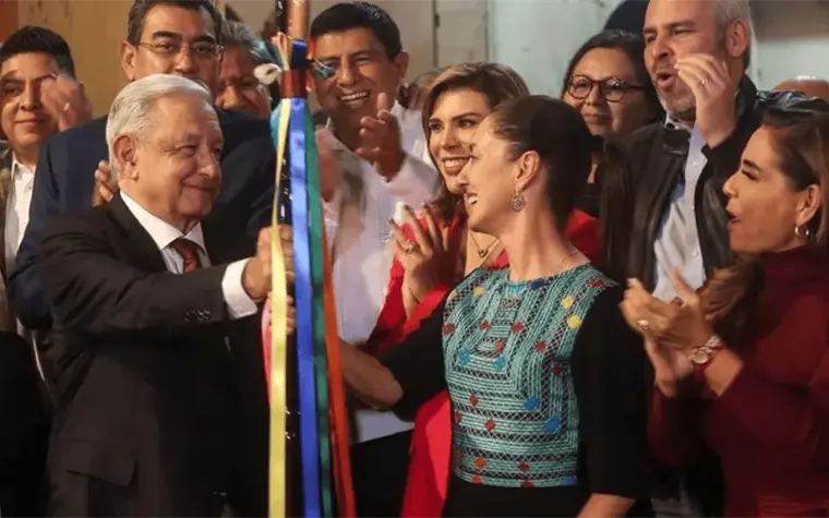 El 7 de septiembre de 2023, Sheinbaum recibió el bastón de mando de manos del entonces presidente López Obrador, tras resultar ganadora en el proceso interno de Morena frente a las demás corcholatas. En ese momento, AMLO explicó que el objeto sería entregado para la "conducción del movimiento de transformación".