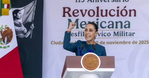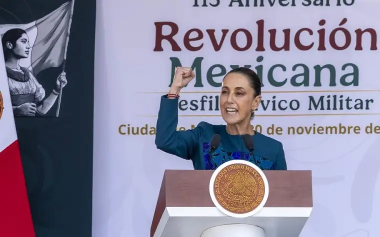 - Tras equiparar al porfirismo con la ultraderecha de ahora, la presidenta Claudia Sheinbaum dijo, durante el discurso inaugural del desfile conmemorativo de la Revolución Mexicana, que "México no volverá a caminar hacia atrás. La paz y la tranquilidad son fruto de la justicia. Por ello no tienen resonancia los discursos que normalizan la violencia como camino, que glorifican la imposición o que pretenden restaurar un país de privilegios para unos cuantos. El que convoca a la violencia, se equivoca; el que alienta el odio, se equivoca; el que cree que la fuerza sustituye a la justicia, se equivoca".