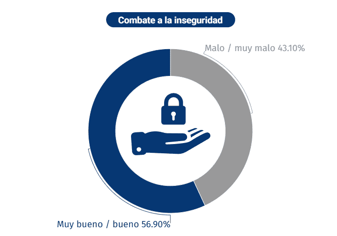 Según la encuesta de FactoMétrica y Reporte Índigo de abril de 2025, la presidenta recibió una aprobación del 56.9 % en seguridad, 63.4 % en reducción de pobreza y 57.4 % en transparencia y lucha contra la corrupción.