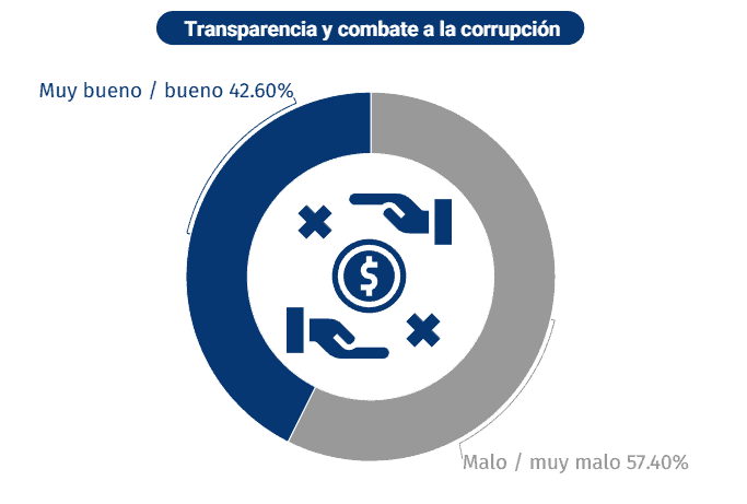 En cuanto a la lucha contra la corrupción, Sheinbaum también recibió una alta aprobación. Entre sus acciones destaca la creación de la nueva dependencia de Anticorrupción y Buen Gobierno, que ha tomado medidas inéditas como la cancelación de la megacompra de medicamentos para 2025-2026 y la sanción de los funcionarios involucrados.