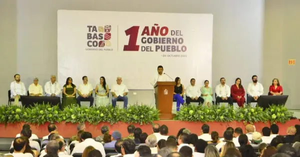 En un acto por su primer año de gestión, realizado en el auditorio DOFYAS del DIF Tabasco, señaló que "el presupuesto del pueblo se queda en el pueblo" y "cada peso se destina al bienestar de las familias tabasqueñas", con lo que "le estamos cumpliendo" a los ciudadanos.