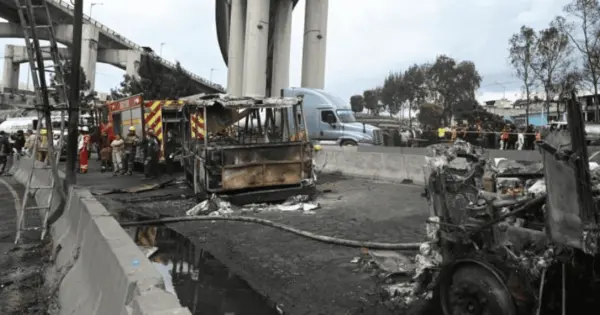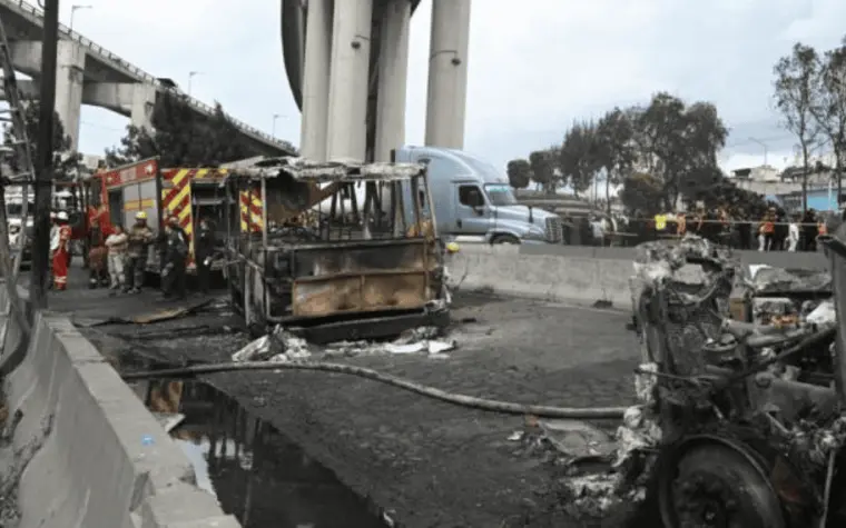 - La tragedia se desencadenó cuando una pipa cargada con gas LP sufrió una falla mecánica que provocó una fuga y posterior explosión mientras transitaba por el puente vehicular.