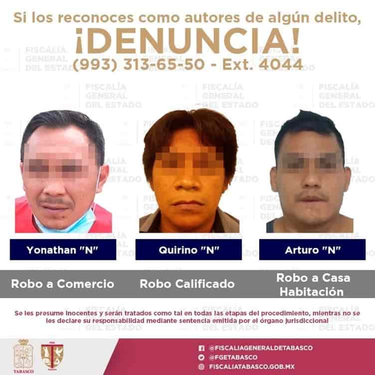 La Fiscalía General del Estado (FGE) de Tabasco cumplió con cinco órdenes de aprehensión, como resultado de las investigaciones efectivas que se desarrollan por delitos de impacto social como el robo en sus distintas modalidades. También se logró la aprehensión de presuntos responsables de violación y violencia familiar.