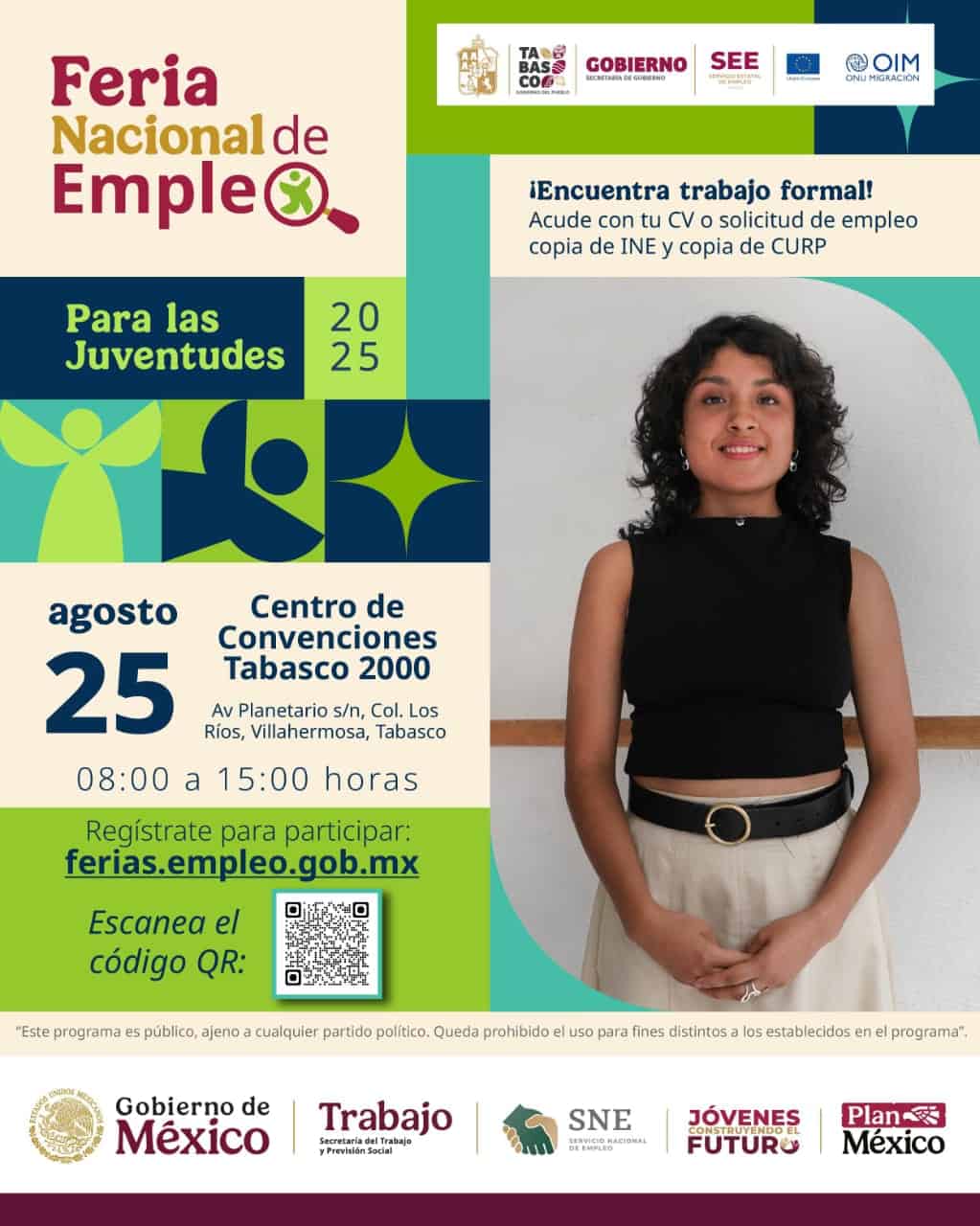 - La Feria de Empleo para las Juventudes se realiza con el apoyo del Gobierno del Estado y la Secretaría del Trabajo y Previsión Social del Gobierno de México.