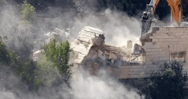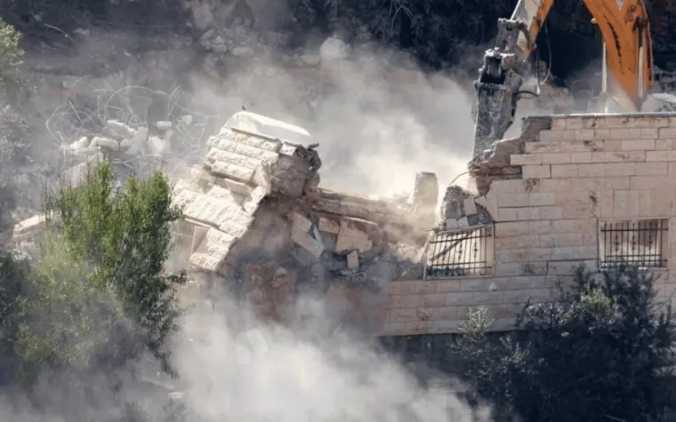 Una excavadora militar israelí destruye la vivienda de una familia palestina en la aldea de Qatanna, dentro de la Cisjordania bajo ocupación.