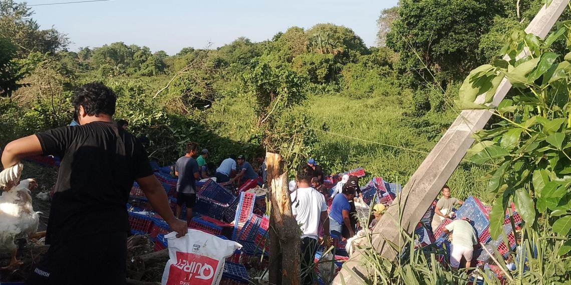 Entre las 6:30 y 7:00 de la mañana, habitantes cercanos se percataron del accidente y comenzaron a llevarse las aves que habían quedado esparcidas en los alrededores.