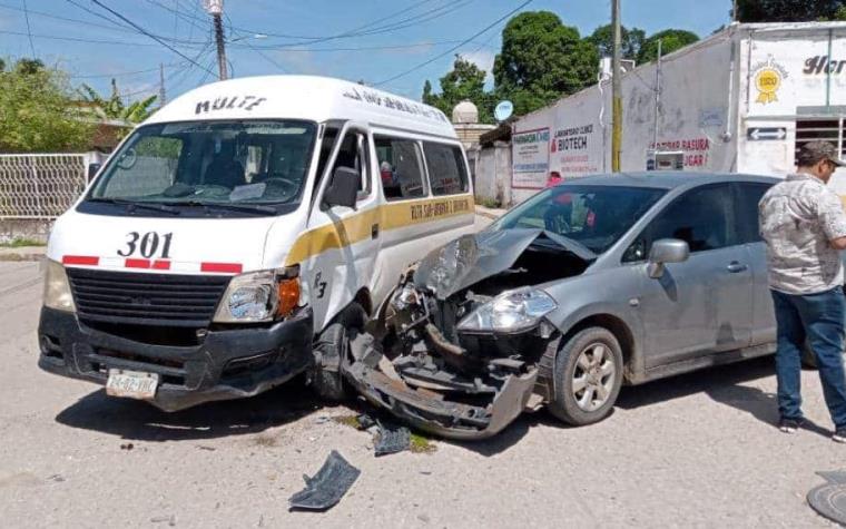 Se impacta conductor de Sentra con combi del servicio público en Balancán