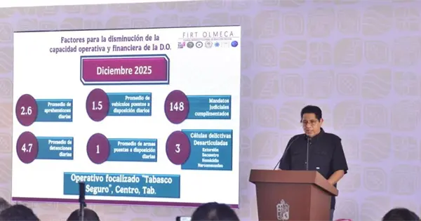 El aseguramiento de vehículos de procedencia ilegal creció de 352 en 2024 a 681 en 2025, un alza de 93.46%, agregó durante la conferencia de prensa en Palacio de Gobierno. El número de armas de fuego aseguradas aumentó de 319 en 2024 a 706 en 2025, un crecimiento de 121%.
