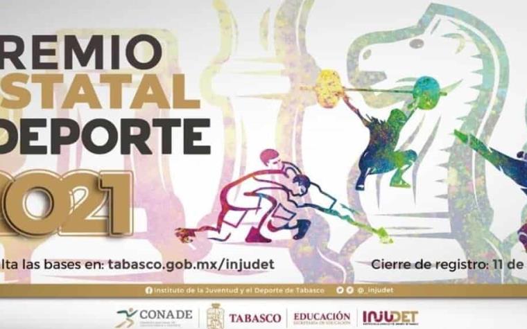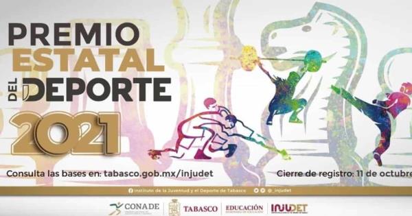 El Instituto de la Juventud y el Deporte de Tabasco (Injudet), emitió el pasado lunes la convocatoria al Premio Estatal del Deporte en su edición 2021, para que las y los aspirantes presenten sus propuestas y de manera digital la hagan llegar por correo electrónico a la dirección que indica la convocatoria.
