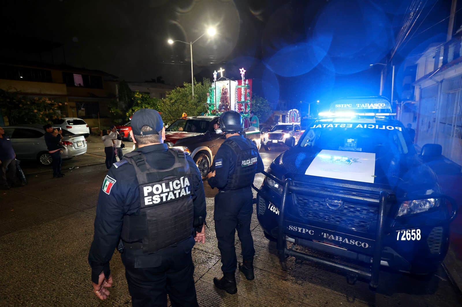 - Tan solo en el Santuario de la Virgen de Guadalupe, ubicado en la colonia 1ro. de Mayo del municipio de Centro, unos de los recintos religiosos donde se concentra mayor afluencia de feligreses, se desplegarán 30 elementos policiacos, 10 moto patrullas, 3 radio patrullas, y 1 un Dron, para que los asistentes participen en esta celebración de manera ordenada y tranquila.