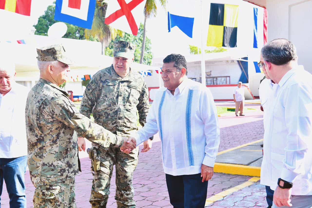 El Gobernador de Tabasco, Javier May Rodríguez, asistió a la ceremonia de entrega-recepción del Mando de Armas de la Quinta Zona Naval, en la que asumió el cargo el vicealmirante Rogelio Bello Aguilar.