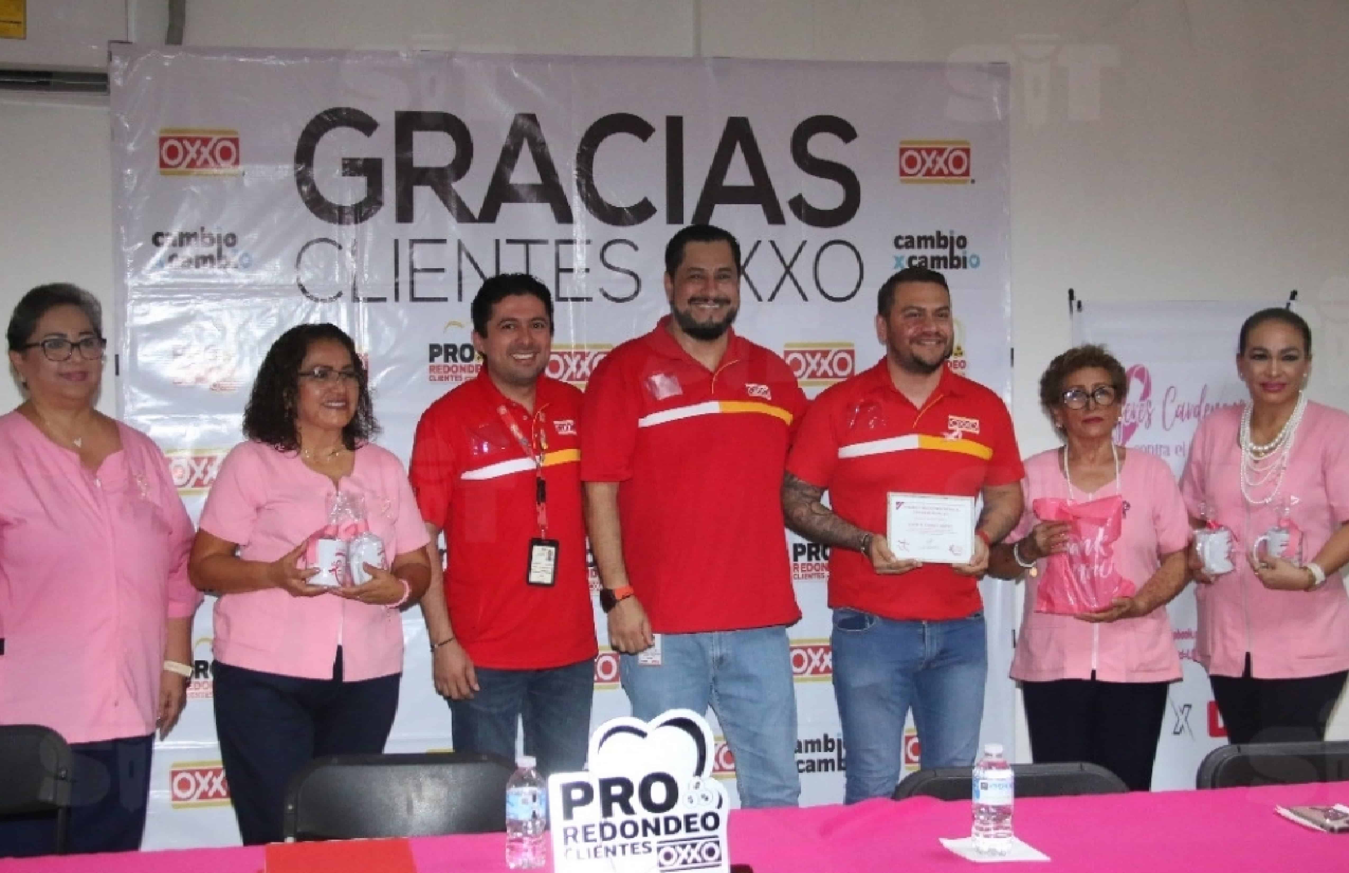 La aportación fue entregada por Cristian Antonio Gallegos, gerente de la zona Chontalpa de Oxxo, durante un evento especial celebrado en beneficio de mujeres que enfrentan esta enfermedad.