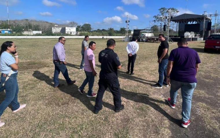 Con el objetivo de verificar que todo esté en orden y sea seguro para los habitantes de Cunduacán, el presidente municipal Abraham Cano González, acompañado del secretario del Ayuntamiento, Jesús del Carmen López Ricárdez, la directora de Obras Públicas, Arq. Karla Nohemí Vinagre, la dirección de Protección Civil, Seguridad Pública y Servicios Municipales, realizaron esta mañana un recorrido en las instalaciones del parque de feria.