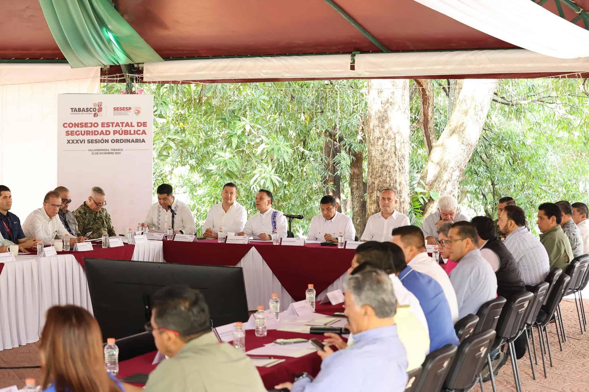 - Durante la Trigésima Sexta Sesión Ordinaria del Consejo de Seguridad Pública del Estado, presidida por el gobernador Javier May Rodríguez, se aprobaron los anteproyectos de inversión de fondos federales en materia de seguridad, la implementación del Mando Único Policial para el municipio de Centro y la continuación de procesos de certificación y evaluación de elementos policiales.