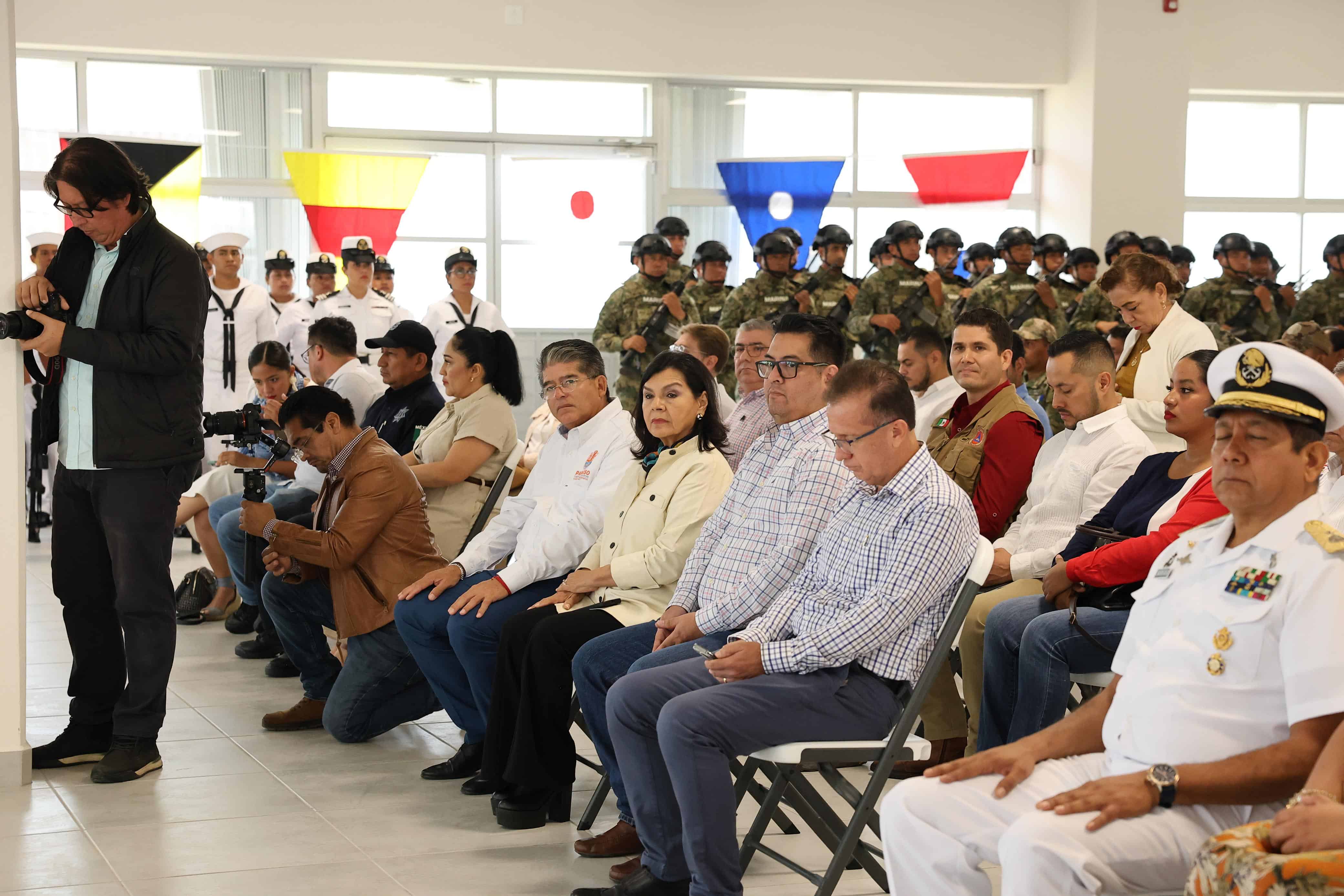 - Durante el acto protocolario, encabezado por el Inspector y Contralor General de Marina, Gerardo de Jesús Toledo Guzmán, quien asistió en representación del titular de la Secretaría de Marina (Semar), Raymundo Pedro Morales Ángeles, el mandatario estatal atestiguó el momento en que Vera Salinas se comprometió a desempeñar leal y patrióticamente su labor, así como honrar y defender la bandera nacional, coadyubando a mantener e incrementar la confianza del pueblo mexicano.