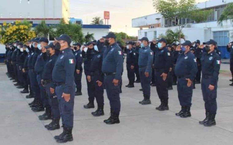 Los elementos policiacos entonaron el Himno Nacional con la participación de la banda de guerra.