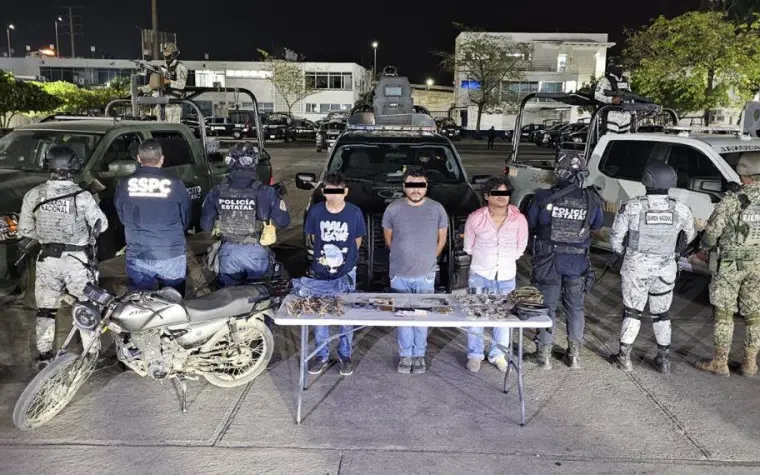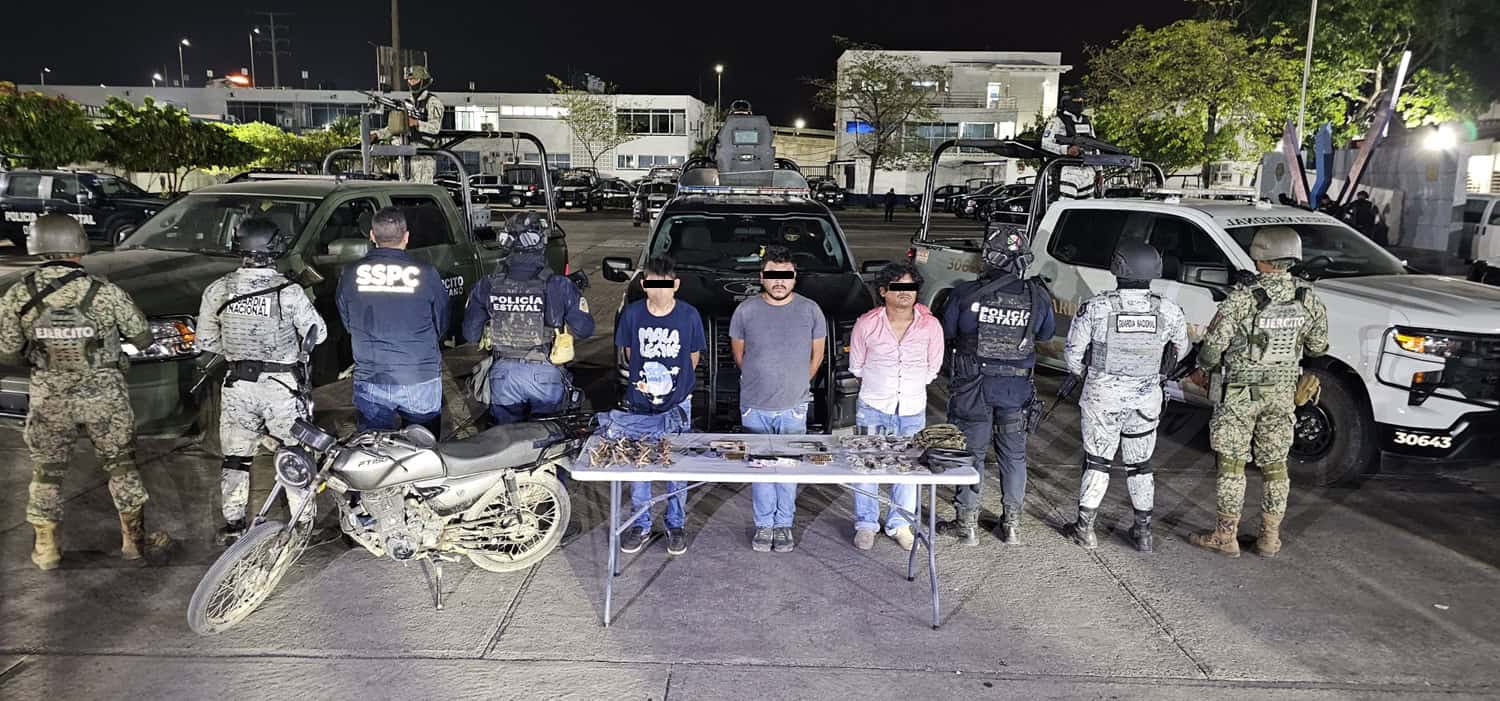 Durante la intervención, las autoridades aseguraron una motocicleta con reporte de robo, dos armas cortas, 47 dosis de marihuana, 10 de cocaína, 10 de cristal, así como 28 estrellas metálicas conocidas como "ponchallantas", utilizadas para obstaculizar la labor policial durante las persecuciones.