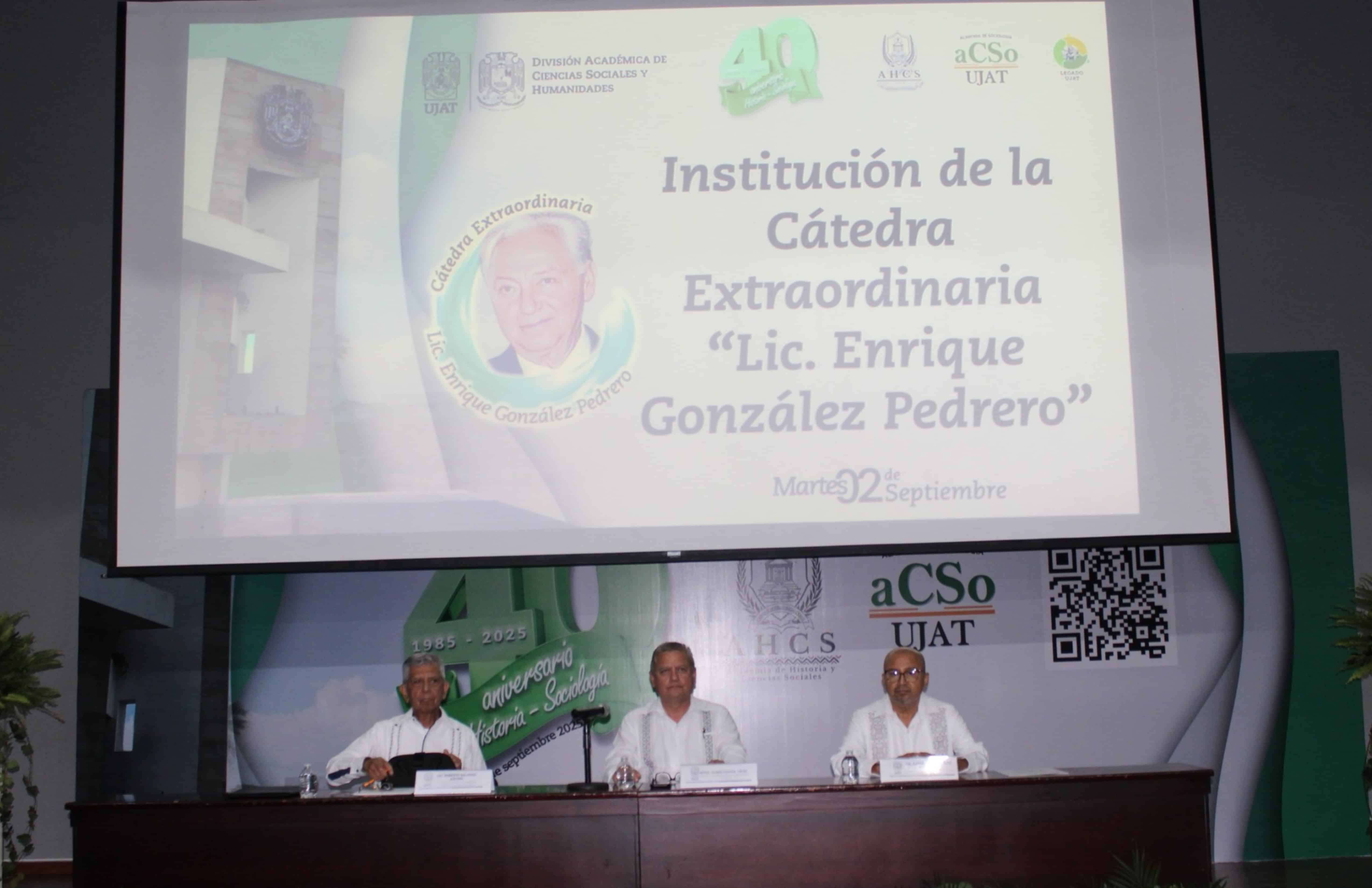 Al evento, antes de la institución de la cátedra, acudieron el rector Guillermo Narváez Osorio; el director de la DACSyH, Ulises Chávez Vélez; Alberto González Pedrero, hermano de don Enrique; la alcaldesa de Centro, Yolanda Osuna Huerta; la delegada de la Cruz Roja, Graciela Trujillo de Cobo; el empresario Ignacio Cobo González, entre otros.
