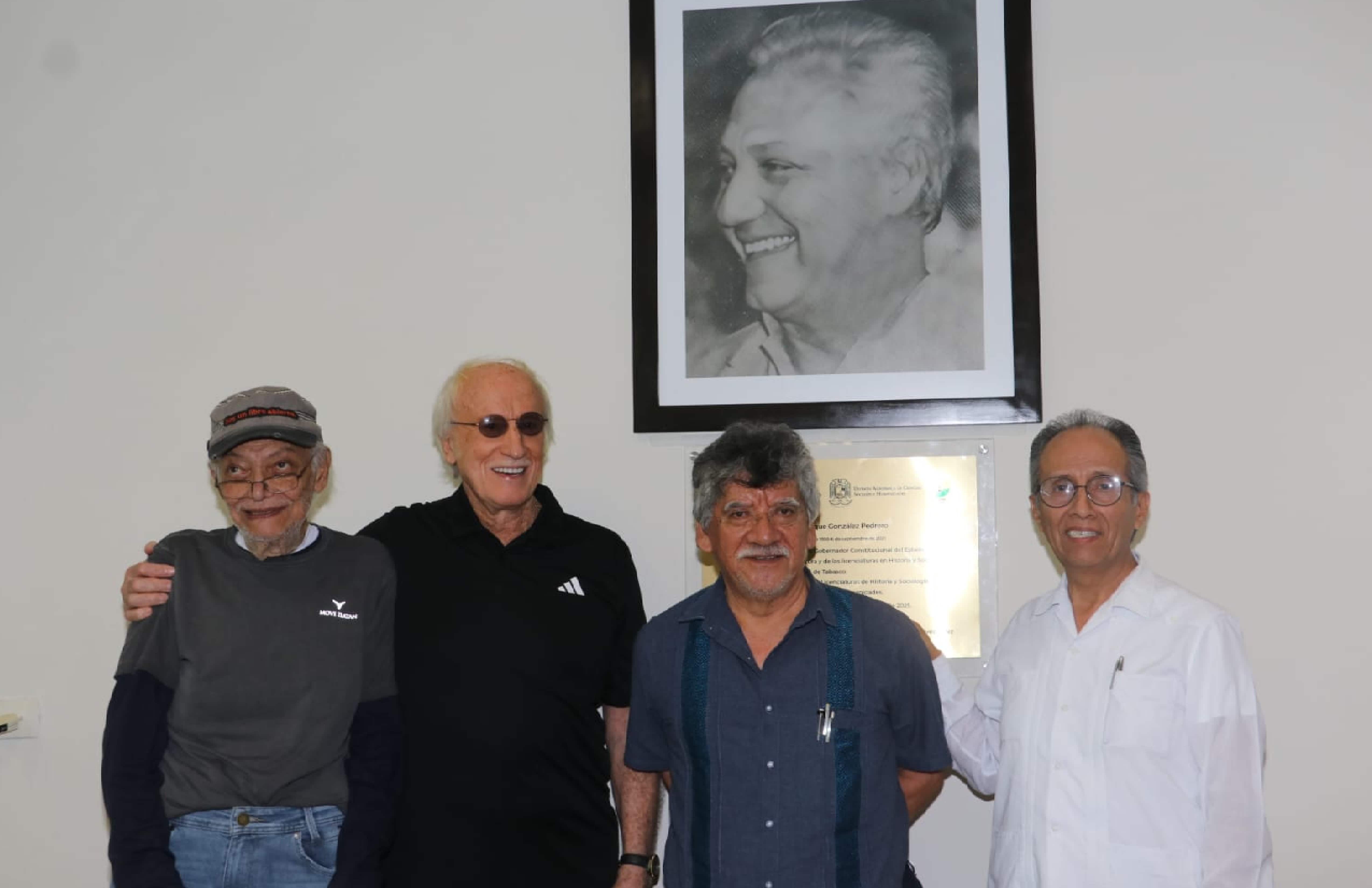 Autoridades de la Universidad Juárez Autónoma de Tabasco (UJAT), empresarios, diputados e invitados develaron la fotografía y placa del exgobernador, académico y escritor Enrique González Pedrero en la Sala de Usos Múltiples que lleva su nombre en la División Académica de Ciencias Sociales y Humanidades (DACSyH) de la máxima casa de estudios.