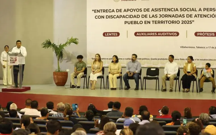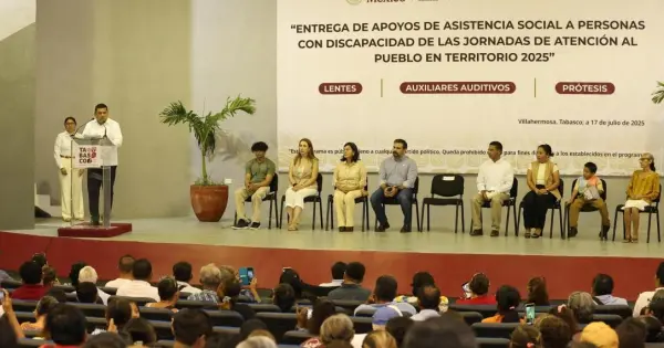 - "Con el corazón y en el lugar correcto, seguimos caminando junto al pueblo para que en Tabasco nadie se quede atrás y nadie se quede afuera", expresó ante las personas con discapacidad que recibieron 230 lentes graduados, tres prótesis y 208 auxiliares auditivos.