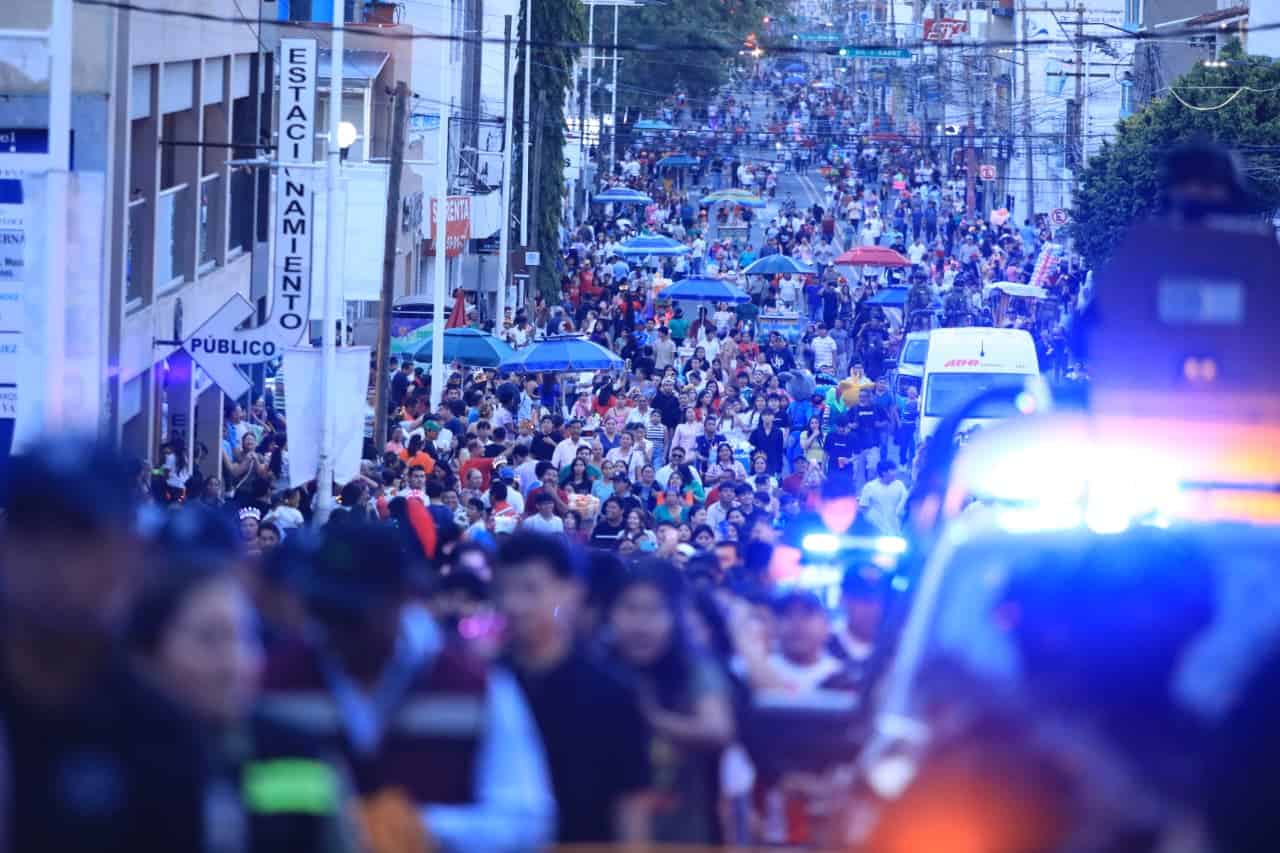 • La avenida Gregorio Méndez Magaña fue un río humano de alegría y júbilo al paso de la joven Fátima Bosch Fernández, quien relució en un vestido rosa