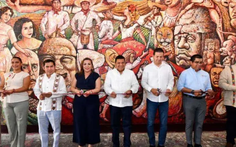 Puntualizó que este mural refleja nuestras raíces Olmecas y Mayas, la danzas y símbolos, la fauna, leyendas gastronómicas y saberes ancestrales de Tabasco, además que es un homenaje a grandes figuras que han llevado el arte tabasqueño a lo más alto.