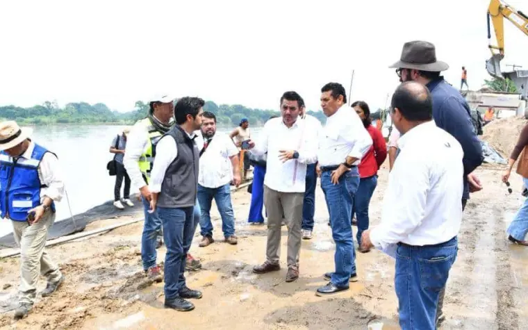 Seguidamente, acudieron a la colonia Gaviotas Norte de Villahermosa, donde supervisaron el bordo de protección en la margen derecha del río Grijalva.