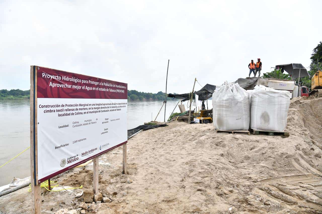 En el ejido Colima de Cunduacán, las autoridades constataron avances de la protección marginal en la margen derecha del río Samaria; y en Centro recorrieron el bordo de protección en margen derecha del río Grijalva
