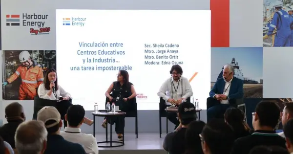 - Durante el panel "Vinculación entre centros educativos y la industria: una tarea impostergable", en el que participaron Sheila Cadena, secretaria de Medio Ambiente y Desarrollo Sostenible de Tabasco; Jorge Anaya, vicepresidente de Legal y Asuntos Corporativos de Harbour Energy; y Benito Ortiz, consultor de Olam Energy, se destacó la importancia de que las y los jóvenes adquieran habilidades técnicas y digitales que les permitan integrarse con éxito en un sector energético en evolución constante.