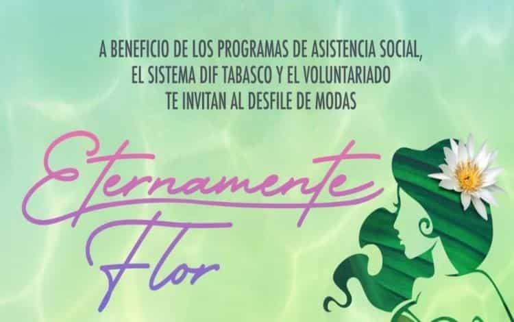 Con la participación de cerca de 30 modelos en pasarela de los diferentes municipios, así como de diseñadores y boutiques, se encuentra listo el desfile de modas “Eternamente Flor”, que organiza el Sistema DIF Tabasco, a través de la Secretaría Ejecutiva del Voluntariado.