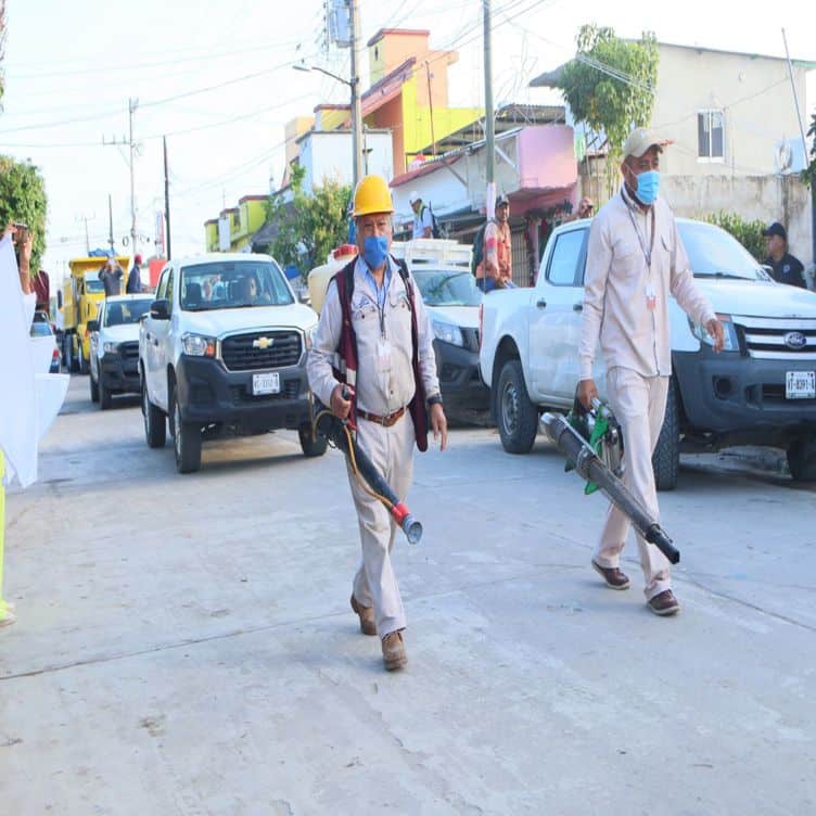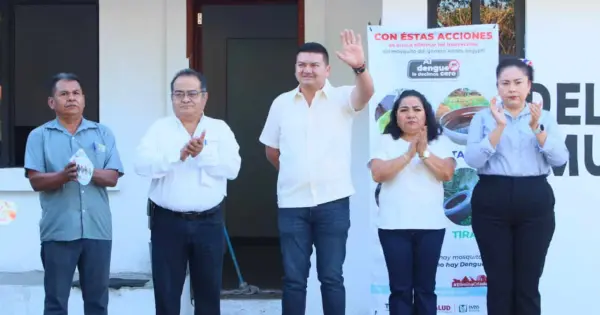 La estrategia aplicada es ir casa por casa para eliminar criaderos de mosquitos en cubetas, llantas y macetas, todo con el apoyo de personal de la Jurisdicción Sanitaria y de las direcciones municipales de Protección Civil y Obras Públicas.
