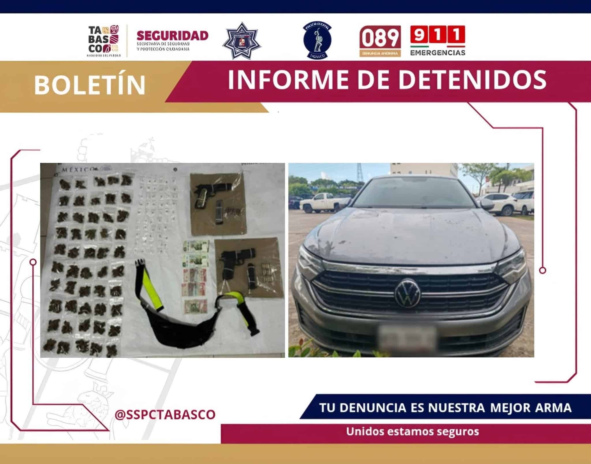 Operativo policial en Tabasco culmina con detención por delitos de salud y armas