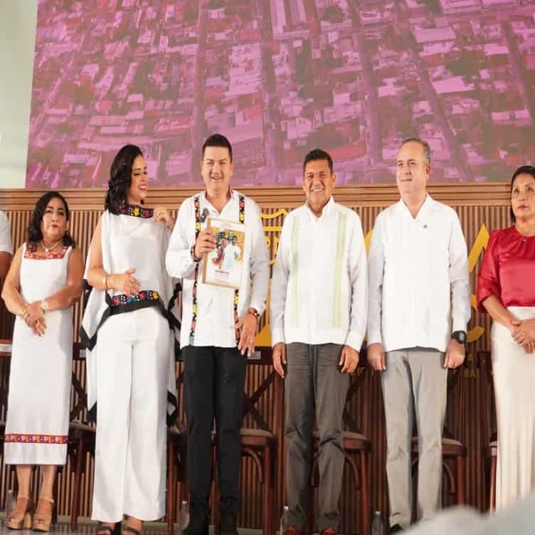 El Gobernador de Tabasco, Javier May Rodríguez asistió como invitado especial a la Sesión Solemne de Cabildo donde el edil rindió cuentas a la población comalcalquense del estado que guarda la administración municipal.