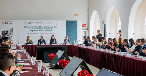 El secretario de Seguridad y Protección Ciudadana (SSPC), Omar García Harfuch, encabezó la Primera Asamblea Plenaria Ordinaria 2025 de la Conferencia Nacional de Seguridad Pública Municipal, donde reiteró el compromiso del Gobierno de México para acompañar y robustecer el trabajo de las policías municipales.