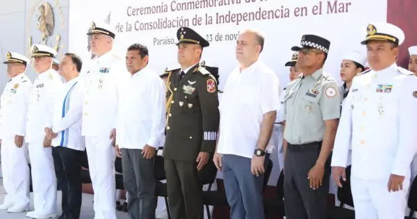 - El Gobernador Javier May Rodríguez presidió este domingo la conmemoración de los 200 Años de la Consolidación de la Independencia en el Mar, en el marco de una ceremonia en la que el Gobierno del Pueblo y las y los tabasqueños rindieron homenaje al valor, la disciplina y el compromiso de las y los marinos que han servido a México para preservar la soberanía y la integridad de nuestro territorio continental, insular y marítimo.