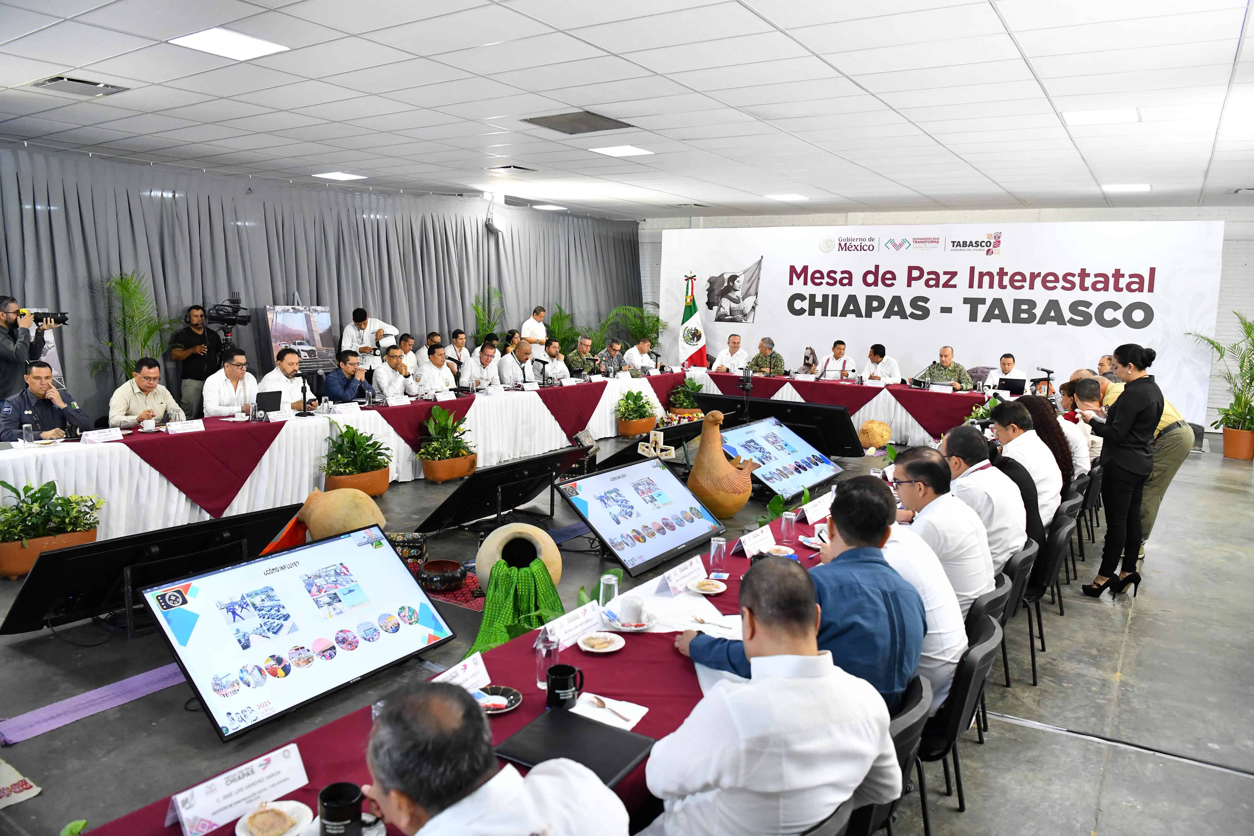El Gobernador Javier May Rodríguez participó en la Mesa de Paz Interestatal Chiapas-Tabasco, que sesionó en Chiapa de Corzo del vecino estado, donde también estuvo el mandatario de aquella entidad, Eduardo Ramírez Aguilar.