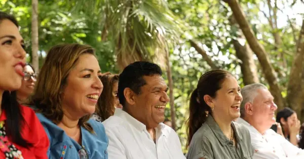 Antes de acomodarse en las gradas naturales rodeado de la comunidad y servidores públicos, May Rodríguez se detuvo en el altar que rinde homenaje a las y los trabajadores del escenario que se adelantaron en el camino, destacando la fotografía de la fundadora María Alicia. "Se quedaron con nosotros", acotó el mandatario.