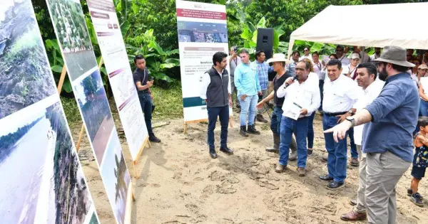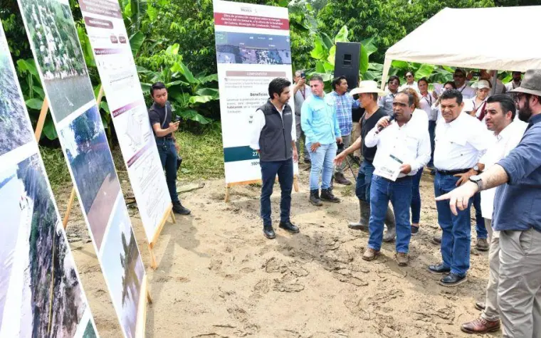 - En el ejido Colima, en Cunduacán, las autoridades verificaron los avances de la construcción de la protección marginal en la margen derecha del río Samaria, una obra con una inversión de 27.8 millones de pesos que beneficia a más de 2 mil habitantes.