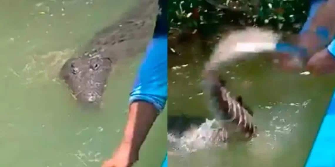 Guía pone en riesgo a turistas al jalarle la cola a un cocodrilo en Yucatán