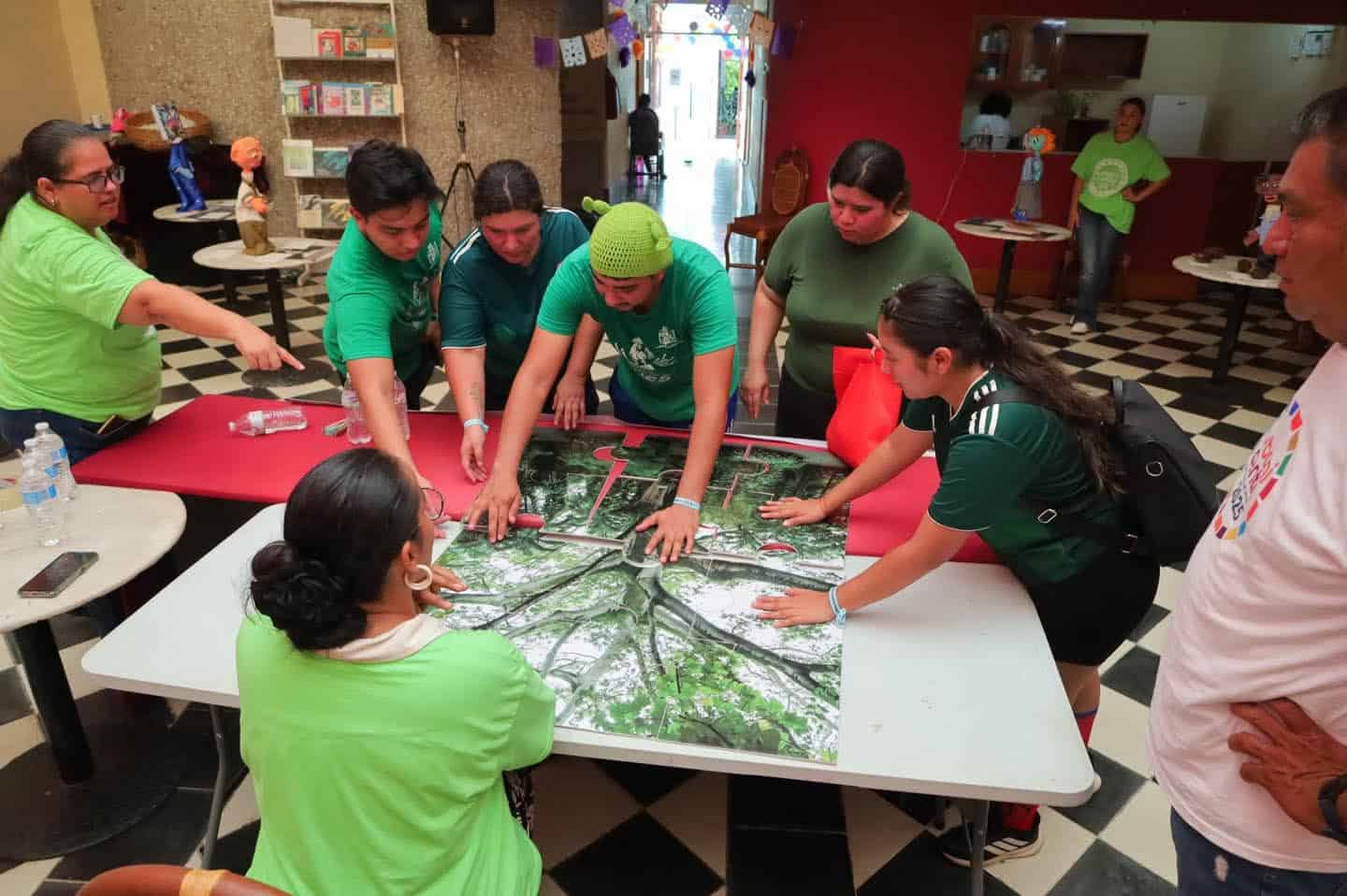 Durante más de seis horas, jóvenes y familias en equipo, enfrentaron en esta cuarta edición consecutiva de Urbanicentro los retos lúdicos relacionados con una ciudad más inclusiva, segura y divertida en las estaciones ubicadas en la Zona Luz de Villahermosa Barrio Mágico y el Malecón Carlos A. Madrazo.