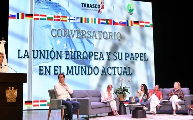 Al compartir un espacio de reflexión y análisis en un contexto internacional, embajadores de Europa, convocaron a estudiantes y profesores de la Universidad Juárez Autónoma de Tabasco (UJAT), para fortalecer los lazos de cooperación académica, cultural y política, como parte del Conversatorio “La Unión Europea y su papel en el mundo actual”.