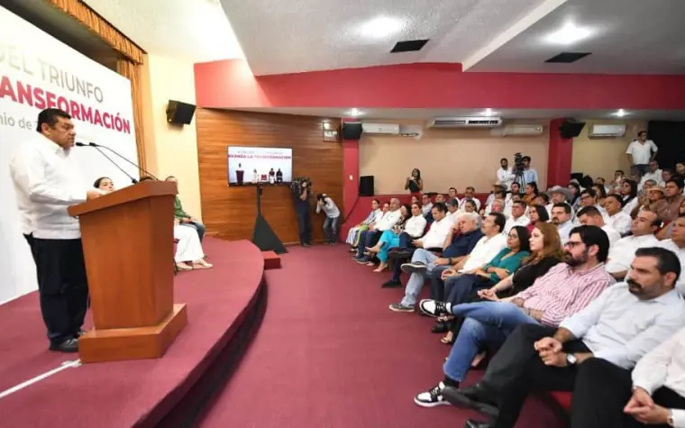 Sostuvo Javier May durante la reunión en la Sala de Arte Antonio Ocampo Ramírez, en la que estuvo acompañado en el escenario por la diputada federal de Morena, Tey Mollinedo Cano, la diputada local Abby Tejeda Vértiz y el alcalde de Cárdenas, Euclides Alejandro.